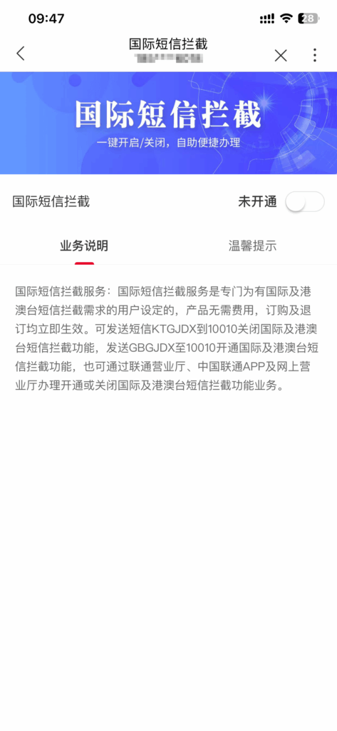 我有两个联通号,其中一个收不到海外验证短信,今天意外发现了收不到的原因,在联通的APP里有个“跨境语音和短信”设置,里面有个“国际短信接收服务”,两个号的设置项目不同,其中老卡是“国际短信拦截”,新卡是“国际短信接收”,也就是说新卡默认是不接收国际短信的。