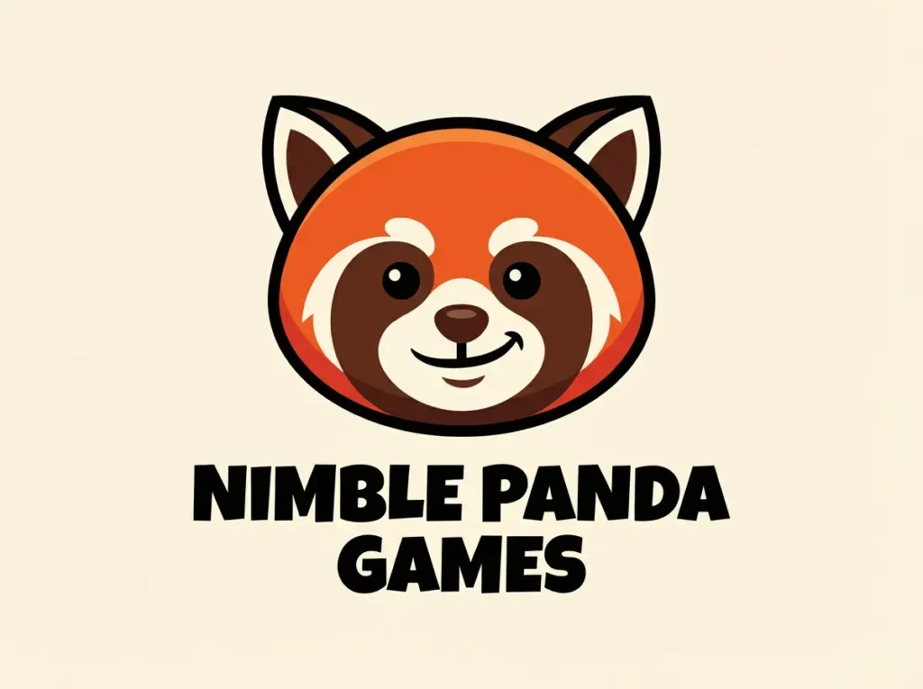 Modern cartoon-style red panda mascot logo for a game company or gaming team, featuring a round expressive face with orange-red fur, dark brown accents, bold black outlines, and a confident playful smile, clean geometric shapes, vibrant flat shading, professional and dynamic logo design on a light or transparent background.